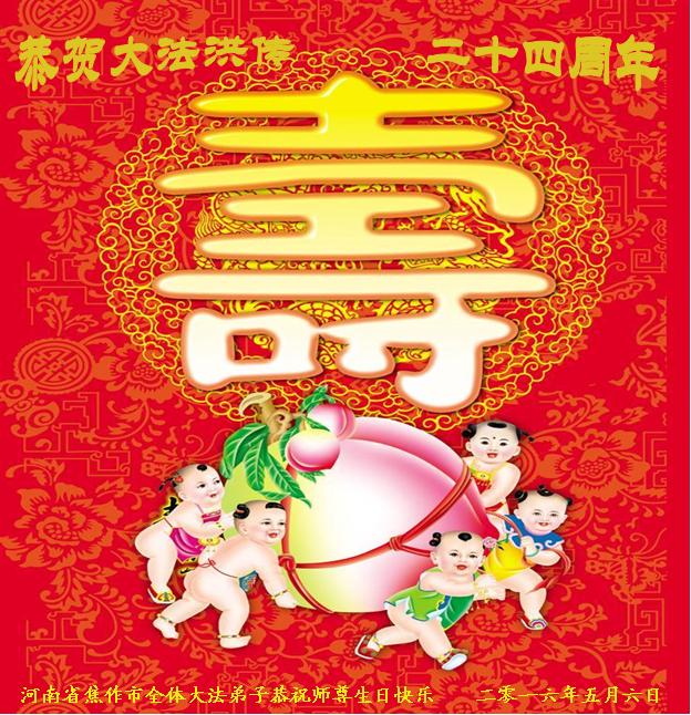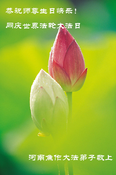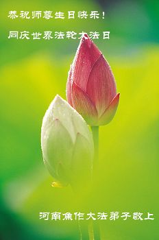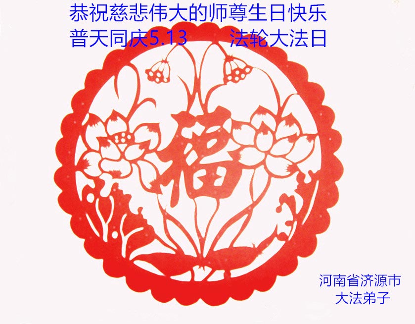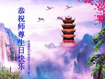 普天同慶,恭迎世界法輪大法日的到來!祝慈悲偉大的李洪志師父生日快樂!師父您辛苦了!弟子叩拜師父,弟子不忘師恩,牢記師父的教誨,做好三件事,隨師把家還。