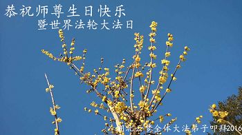在這新舊歷史的交替中,在這普天同慶的偉大日子裏,襄陽市全體大法弟子祝慈悲偉大的師父生日快樂!並恭賀世界法輪大法日。