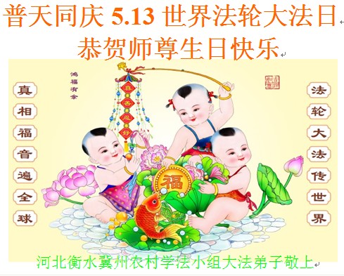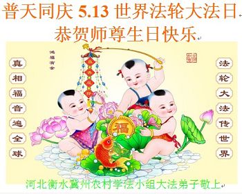河北鄉村大法弟子們感恩師父的慈悲救度!恭祝慈悲偉大的師尊生日快樂!慶祝法輪大法洪傳二十四週年!慶祝5.13世界法輪大法日!