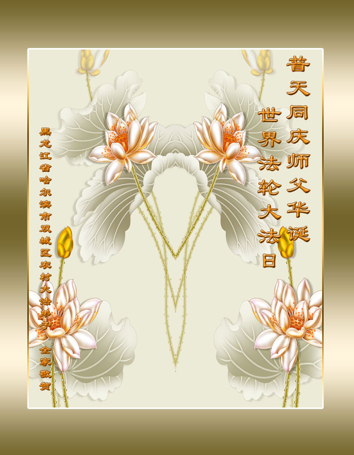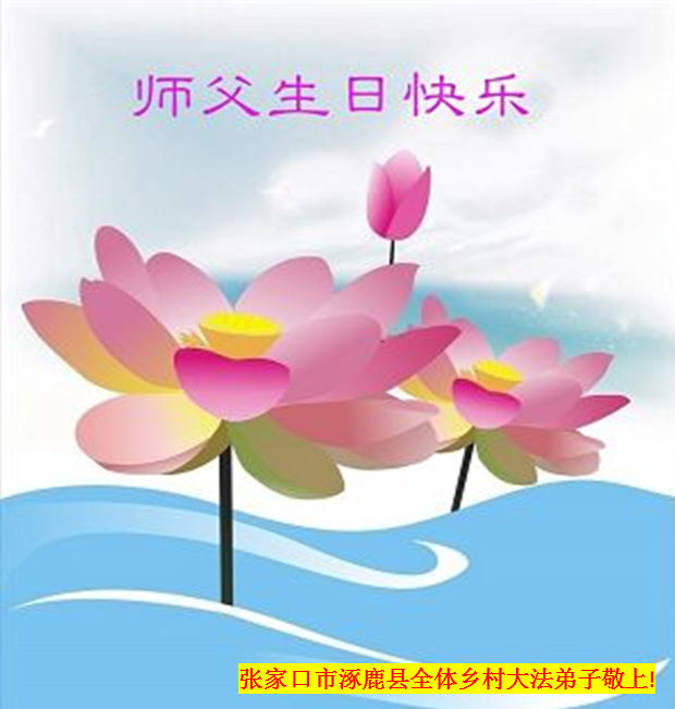 師父您好!在修煉路上是您時時呵護;在魔難面前,是您時時點悟;在過關時是您為弟子承受,沒有偉大師父對我的一路呵護就沒有今天的我。我借明慧一角向偉大的師父獻上真心祝願:師父生日快樂!請師父放心,我有決心今後做的更好,讓師父多一點欣慰。