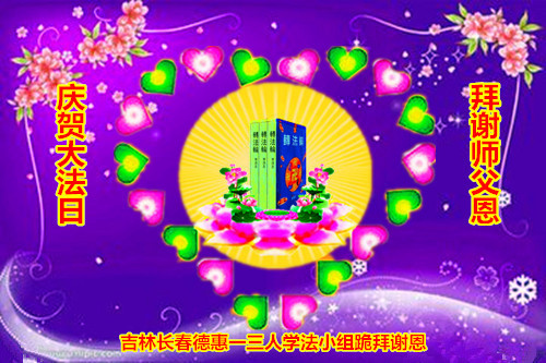 長春榆樹市大法弟子一學法小組恭祝師尊華誕快樂暨恭賀法輪大法日!師父,您辛苦了!感念師尊浩蕩洪恩!謝謝師尊的慈悲苦度!
