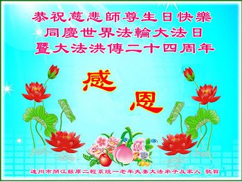 甘肅省紡織系統全體大法弟子恭祝慈悲偉大的師尊生日快樂!祝賀世界法輪大法日!