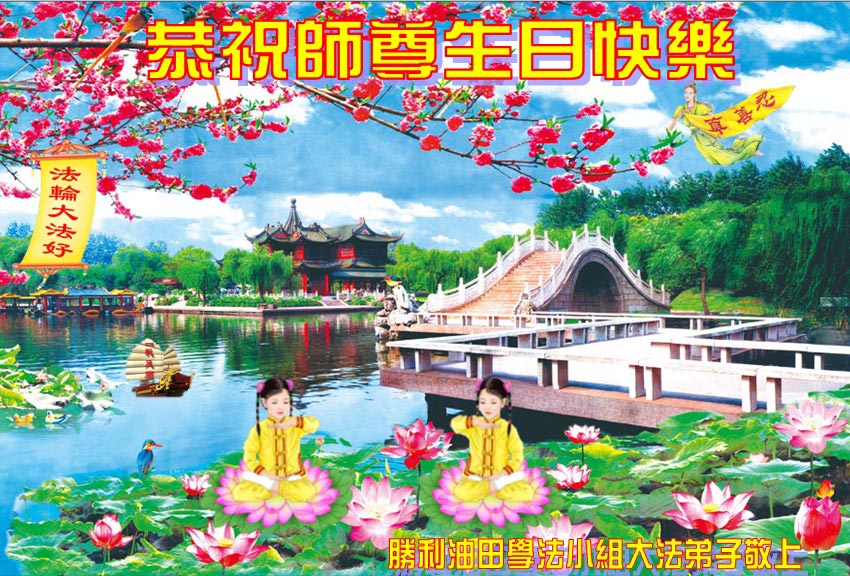 普天同慶5.13世界法輪大法日!勝利油田全體大法弟子恭祝慈悲偉大的師尊生日快樂!普天同慶5.13世界法輪大法日!