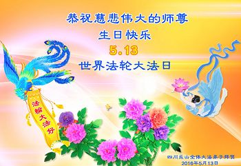 四川樂山全體大法弟子恭祝慈悲偉大的師尊生日快樂!同慶5.13世界法輪大法日!
