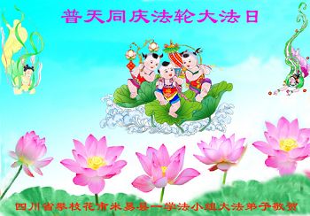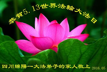 四川綿陽一大法弟子的家人恭賀世界法輪大法日!