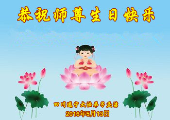 四川遂寧市大法弟子聖潔恭祝師尊生日快樂!
