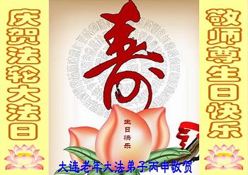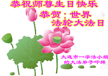 遼寧省大連市三個學法小組的全體大法弟子恭祝慈悲偉大的師尊六十五華誕快樂!恭賀法輪大法洪傳世界二十四週年!