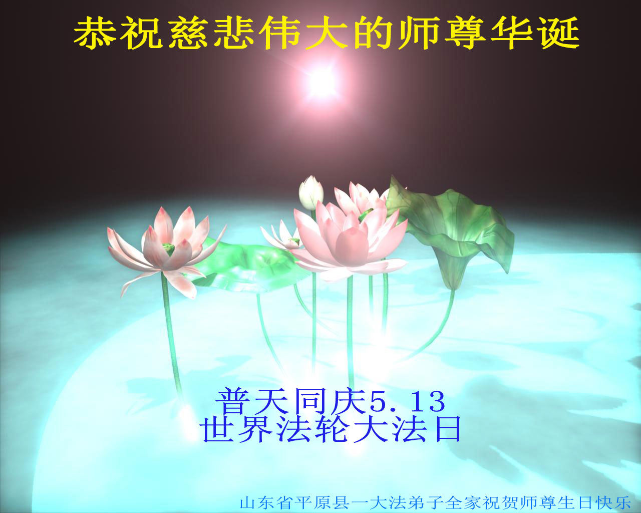 山東德州平原全家大法弟子及其家人叩拜師尊!恭祝師尊生日快樂!