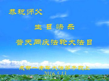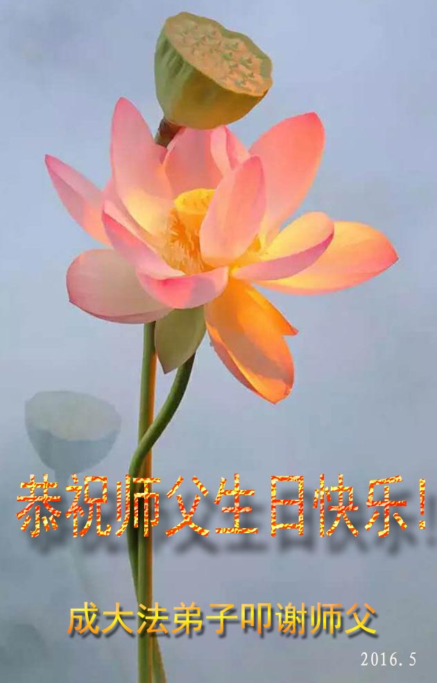 在這普天同慶的日子,弟子感恩師父的苦心救度。弟子在這亂中得到這高德大法,在迷茫中找到了一盞指向彼岸的航燈。弟子真是無法用人間的語言感恩師父。唯有按照師父教誨弟子的去做,腳踏實地,認認真真做好三件事。來報答師父的救命之恩。讓師父少操一份心。在513來臨之際弟子祝師父生日快樂!謝謝師父!謝謝師父!