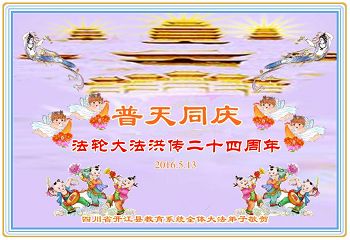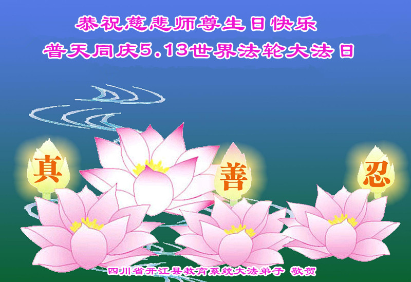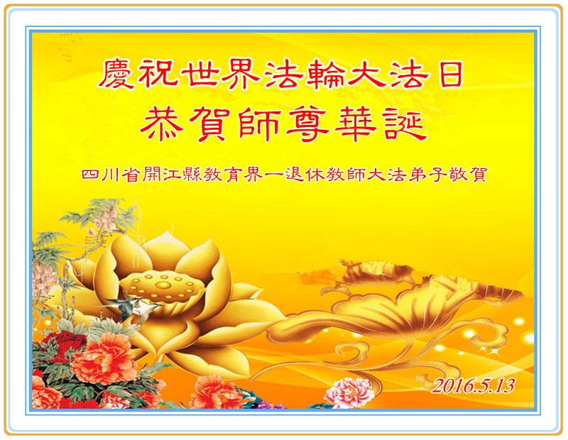 四川省開江縣教育界一退休教師大法弟子慶祝世界法輪大法日!