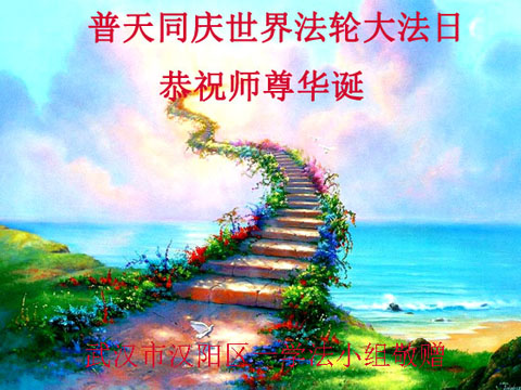 武漢市漢陽區一七人學法小組恭祝師尊生日快樂!我們做的雖然沒有師父要求的那樣好,但是我們是盡自己所能在助師正法,以後我們也不會懈怠,請師父放心,我們會走好最後的路。