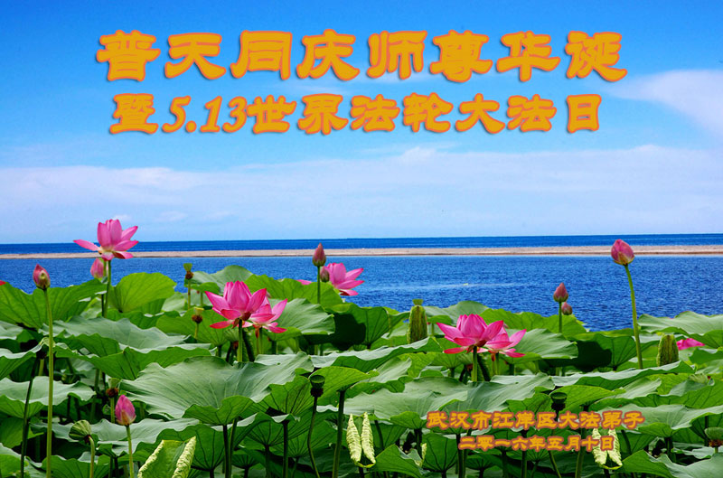 在世界法輪大法日,武漢市東西湖區全體大法弟子向師尊問好!恭祝師尊生日快樂!師尊您辛苦了!在師父的慈悲呵護下,弟子們才能走到今天,弟子們一定聽師父的話做好三件事,在修煉上更加精進,不辜負師父的慈悲苦度!