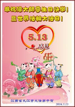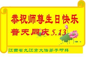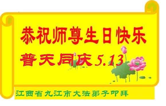 江西省九江市大法弟子恭祝師尊生日快樂!同慶5.13世界法輪大法日!
