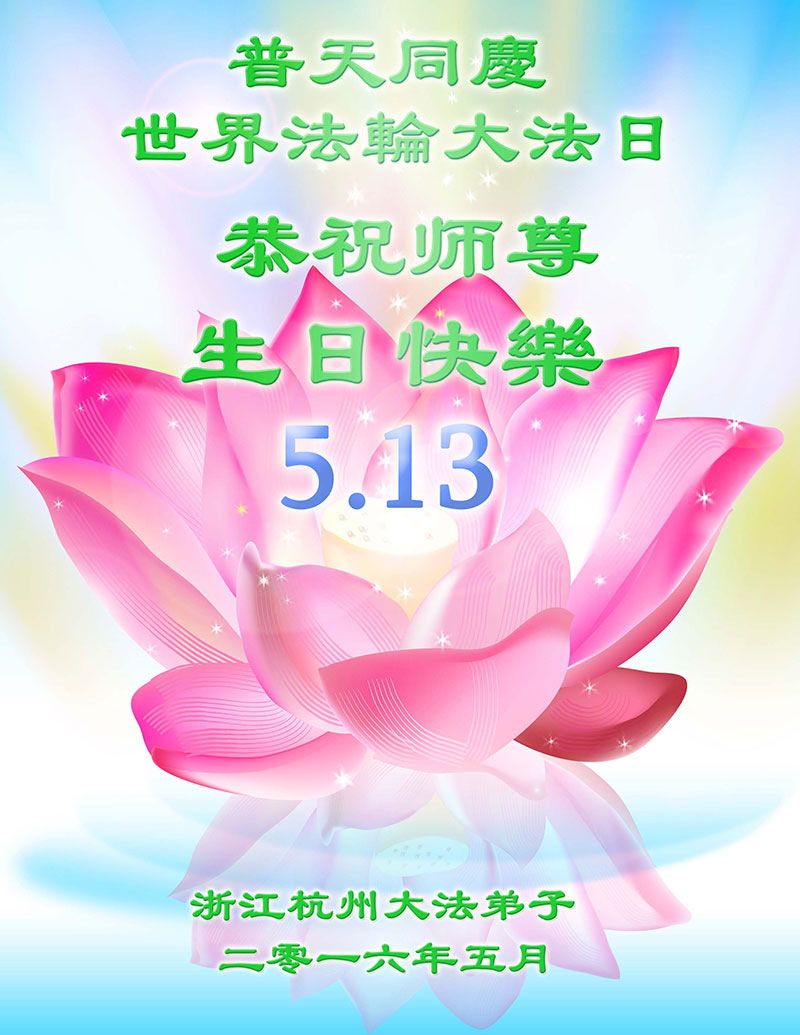 在這普天同慶的日子裏,仙居縣全體大法弟子慶祝世界法輪大法日!恭祝師尊好!恭祝師尊生日快樂!