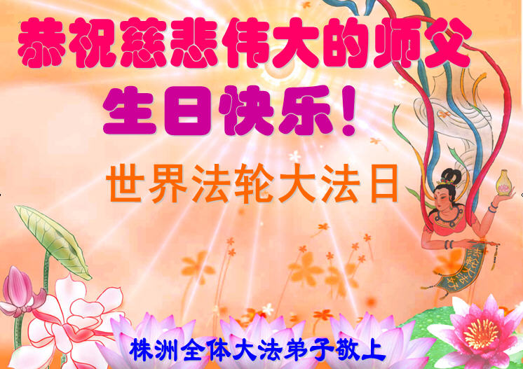 湖南株洲全體大法弟子恭祝慈悲偉大的師父生日快樂!同祝世界法輪大法日!