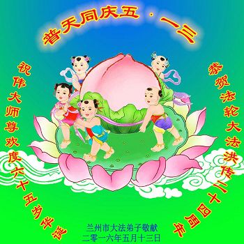 甘肅省蘭州市大法弟子恭祝慈悲偉大的師尊生日快樂!慶祝法輪大法洪傳二十四週年!慶祝第十七屆世界法輪大法日!