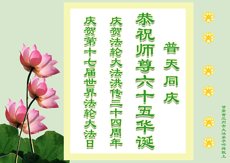 甘肅大法弟子恭賀世界法輪大法日暨師尊華誕(22條)