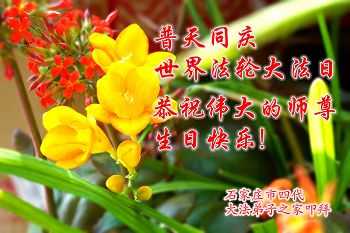 河北省石家莊母子倆大法弟子及家人一家三口敬賀