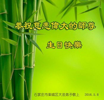 弟子B:我是九四年得法的弟子。我和老伴恭祝師父生日快樂!