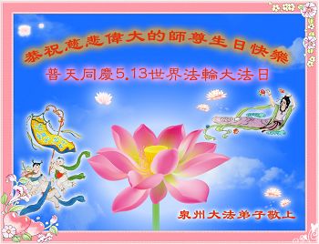 福建省泉州市大法弟子:熱烈慶祝「513」世界法輪大法日!感恩師尊的慈悲苦度,恭祝慈悲偉大的師尊生日快樂!