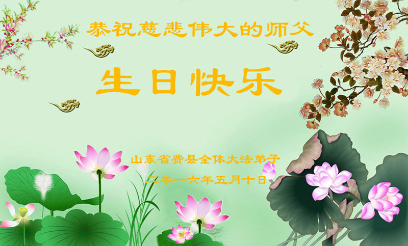 感謝師尊對弟子們的慈悲救度之洪恩!在宇宙正法最後的最後這有限的時間裏,我們費縣所有資料點大法弟子會更加珍惜、盡全力完成大法弟子的歷史使命,圓滿隨師還。最後再次恭祝師尊華誕快樂!