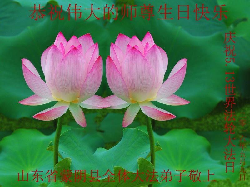 山東省臨沂市蒙陰縣大法弟子向慈悲偉大的師尊問好!恭祝師尊生日快樂!