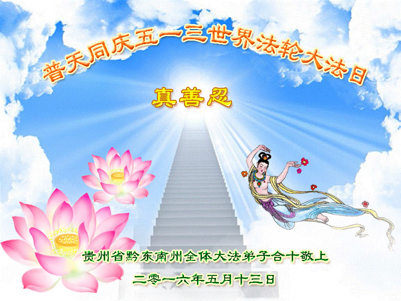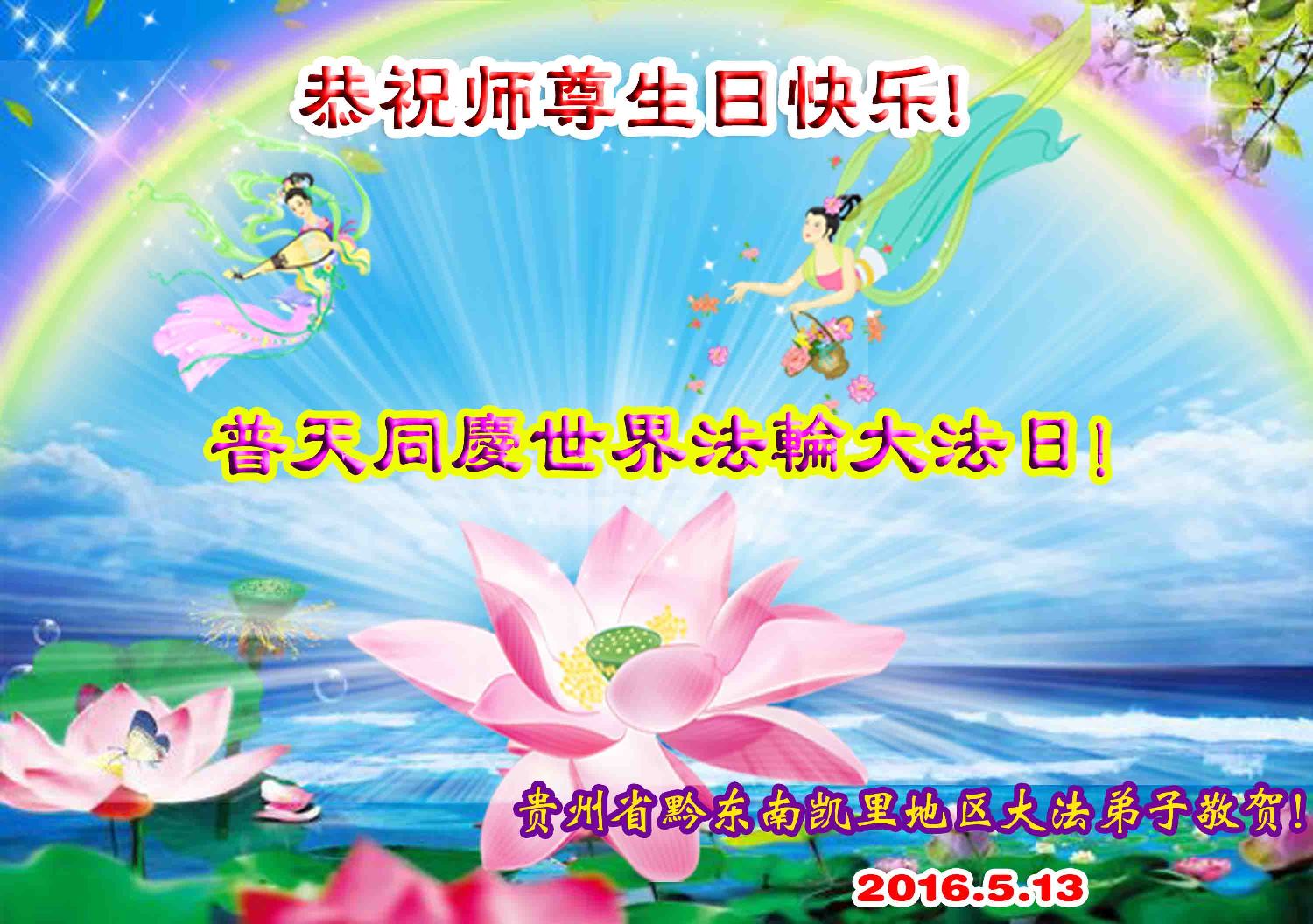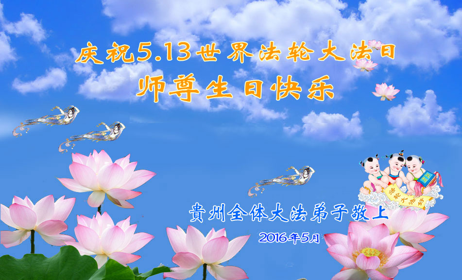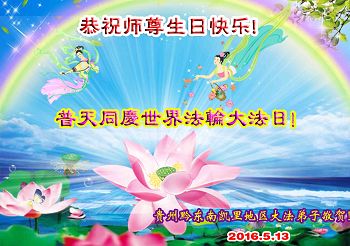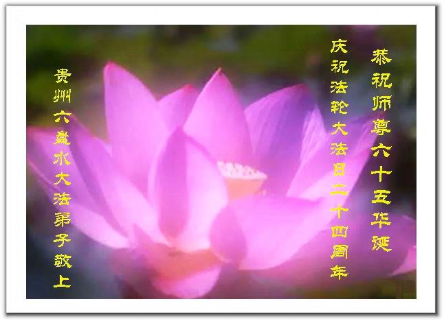 貴州全體大法弟子在世界法輪大法日到來之際,敬上,表達貴州全體大法弟子對慈悲偉大的師尊的無限感恩,恭祝師尊生日快樂!祝願全世界大法弟子節日快樂!