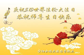 在這普天同慶同祝的大喜日子,表達我們共同的心聲:師父辛苦了!我們想念師父!回顧這十多年的正法修煉路,在師父的慈悲呵護下,我們走到了今天,千言萬語難以表達對師尊的感恩,今後我們要更加精進做好三件事,努力完成歷史賦予的使命,修煉如初,穩健的走好最後這段正法修煉路,配當和師父同在「正法時期大法弟子」的光榮稱號,用實際行動來慶祝一年一度的世界法輪大法日。
