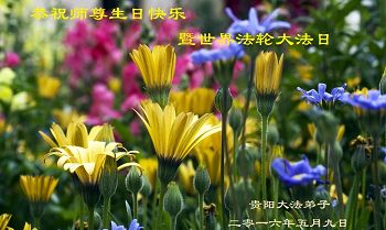 值此神聖的時日,我們貴陽大法弟子恭祝您生日快樂!並與全球大法弟子一起歡慶世界法輪大法日。我們會一如既往的緊隨師尊,無論邪惡如何垂死掙扎,都絲毫影響不了我們!請師尊放心。