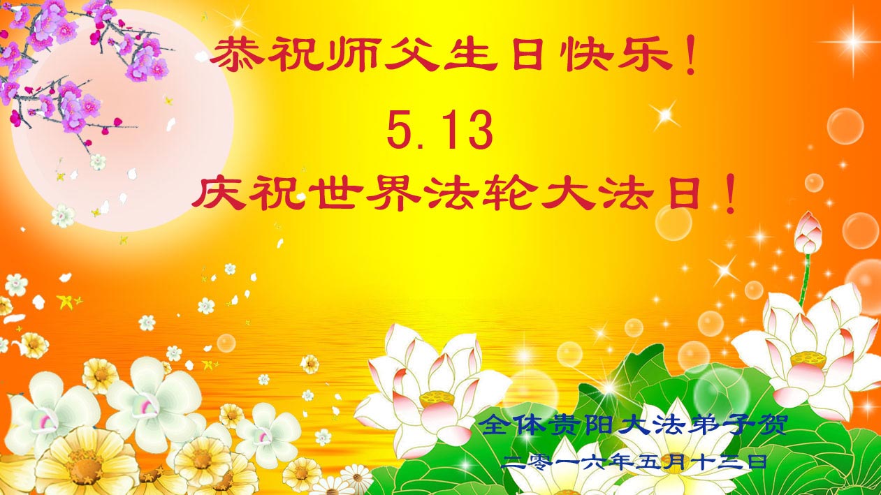 貴陽全體大法弟子在5.13世界法輪大法日到來之際,恭祝慈悲偉大的師尊生日快樂!祝願全世界大法弟子節日快樂!