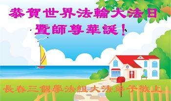 吉林省長春三個學法小組大法弟子恭賀世界法輪大法日暨師尊華誕!