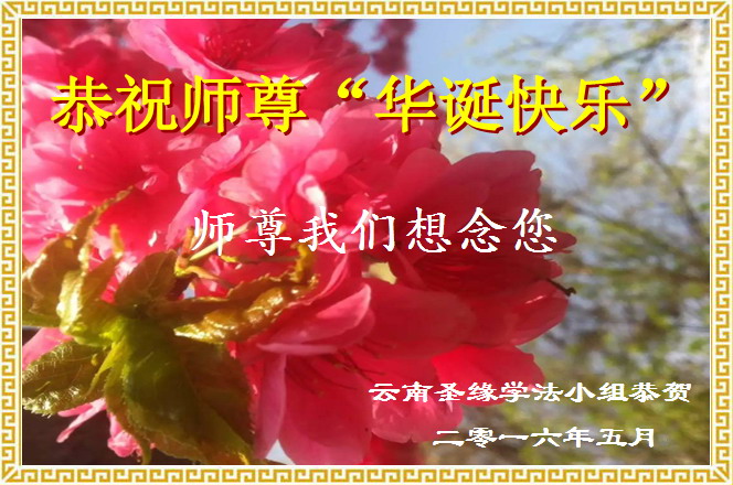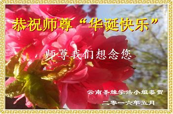 雲南省昆明市官渡區大法弟子代獄中的妻子恭頌師尊華誕!慶祝世界法輪大法日!祝賀法輪大法洪傳二十四週年!