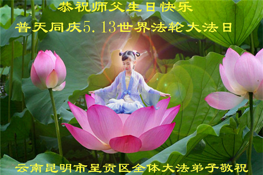 雲南昆明市官渡區一大法弟子恭祝師尊華誕!普天同慶世界法輪大法日!