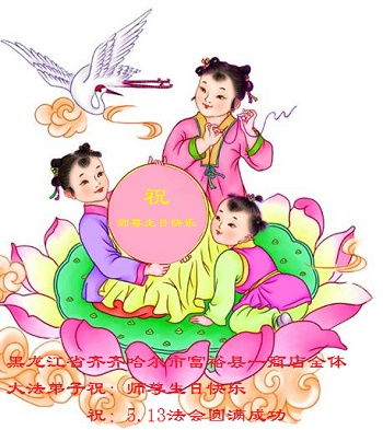 在師父的華誕和世界法輪大法日到來之際,黑龍江省齊齊哈爾市九人大法修煉之家及學法小組全體成員恭祝慈悲偉大的師父生日快樂!感謝師尊的慈悲呵護,弟子們會嚴格按照師父的要求學好法、多學法,守住一思一念,時時事事用大法歸正自己,救度更多的眾生,圓滿隨師還。