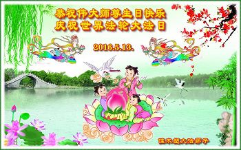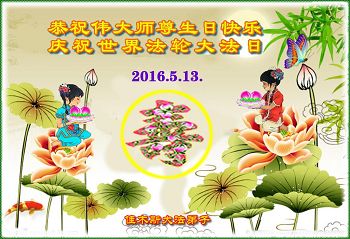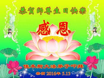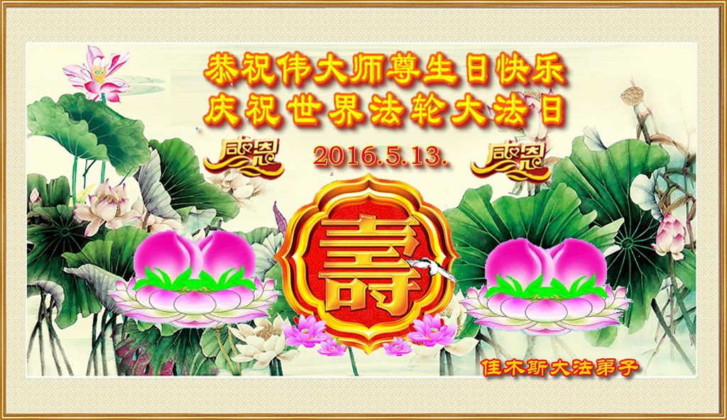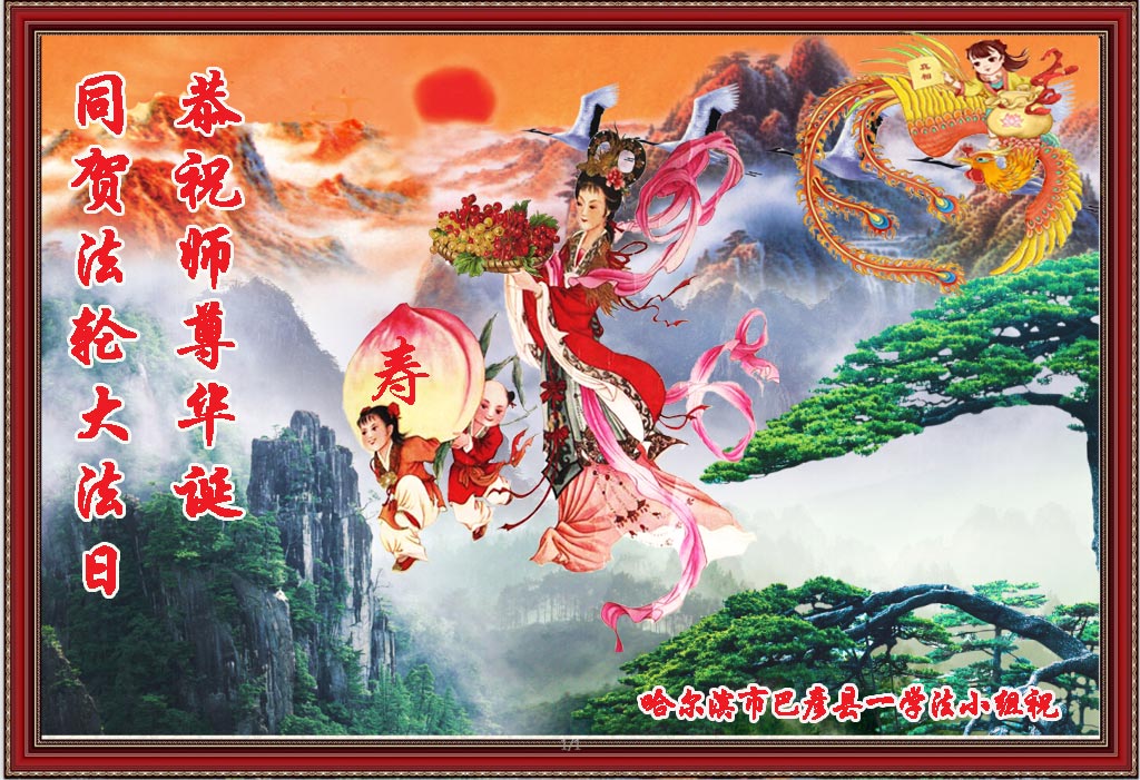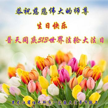 黑龍江省佳木斯市富錦市一大法弟子全家恭祝師尊華誕暨世界法輪大法日!恭賀法輪大法洪傳二十四週年!