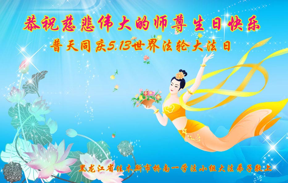 黑龍江省佳木斯大法弟子恭祝偉大師尊生日快樂!祝賀世界法輪大法日!
