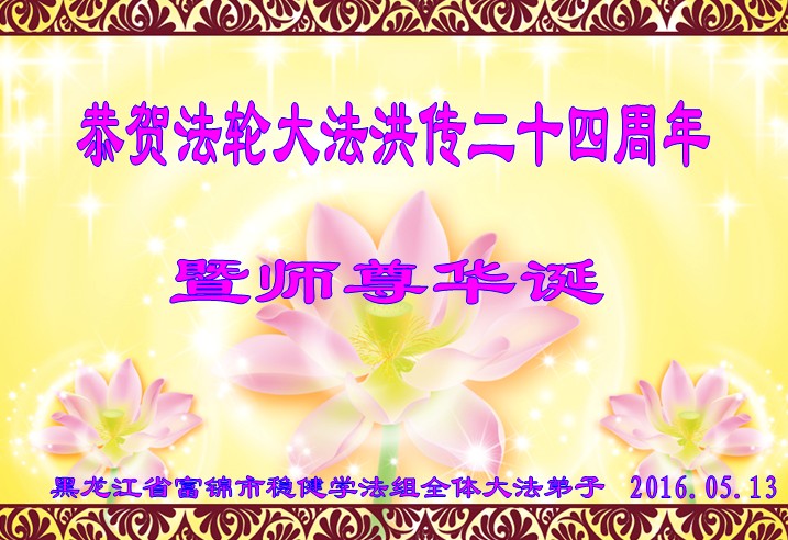 黑龍江省佳木斯市富錦市大法弟子恭祝師尊華誕暨世界法輪大法日!恭賀法輪大法洪傳二十四週年!
