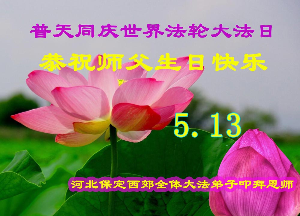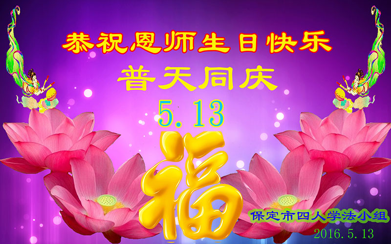 河北保定大法弟子恭賀5•13世界法輪大法日!恭祝師父生日快樂!