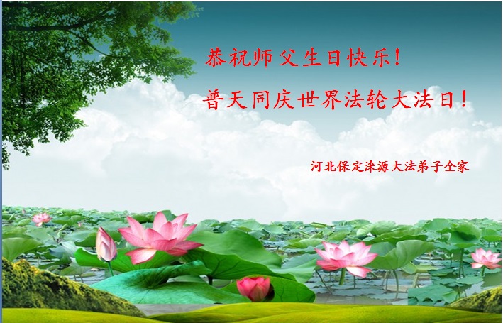 河北保定淶源大法弟子全家恭祝師父生日快樂!普天同慶世界法輪大法日!