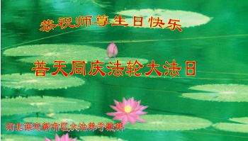 河北保定新市區大法弟子恭祝師尊生日快樂!普天同慶法輪大法日!