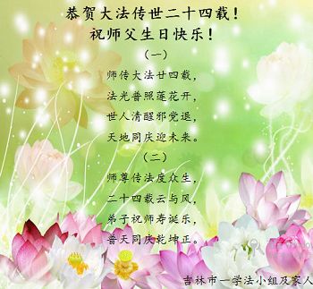 吉林市大法弟子恭祝偉大師尊生日快樂!慶賀世界法輪大法日普天同慶!