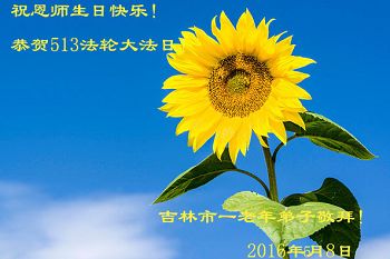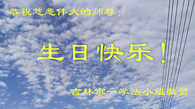 吉林市大法弟子恭祝偉大師尊生日快樂!慶賀世界法輪大法日普天同慶。