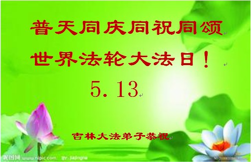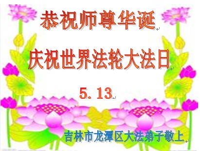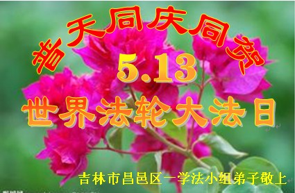 我們是吉林市昌邑區一學法小組全體學員熱烈慶祝513大法日,恭祝慈悲,偉大師尊生日快樂!並祝法輪大法好!真善忍好!
