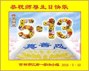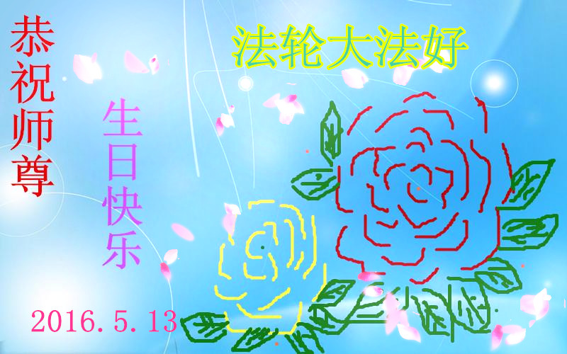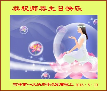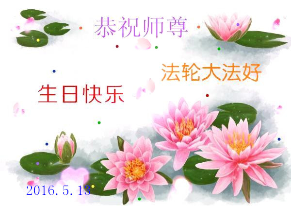 普天同慶世界法輪大法日,在此與母親同修及五歲的兒子一起祝賀師尊生日快樂,衷心的說一聲「師父,您辛苦了!」弟子一定勇猛精進,做好三件事,不讓師父操心,謝謝師父的慈悲苦度。