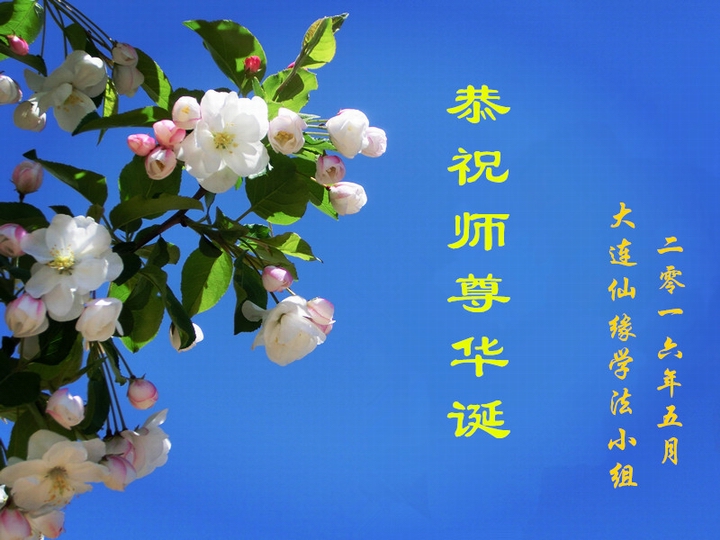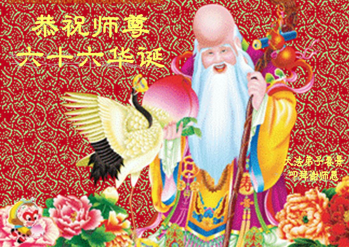 師父生日快樂!內心感恩師父洪傳宇宙大法,救度眾生。作為大法弟子無以為報恩師的浩蕩洪恩,在最後不多的正法進程中,抓緊時間,精進不怠。師父,我們一定要跟著您回家。