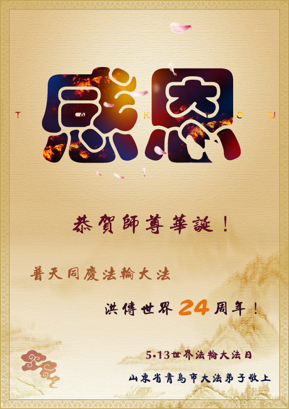 山東青島市大法弟子恭祝慈悲偉大的師尊生日快樂!