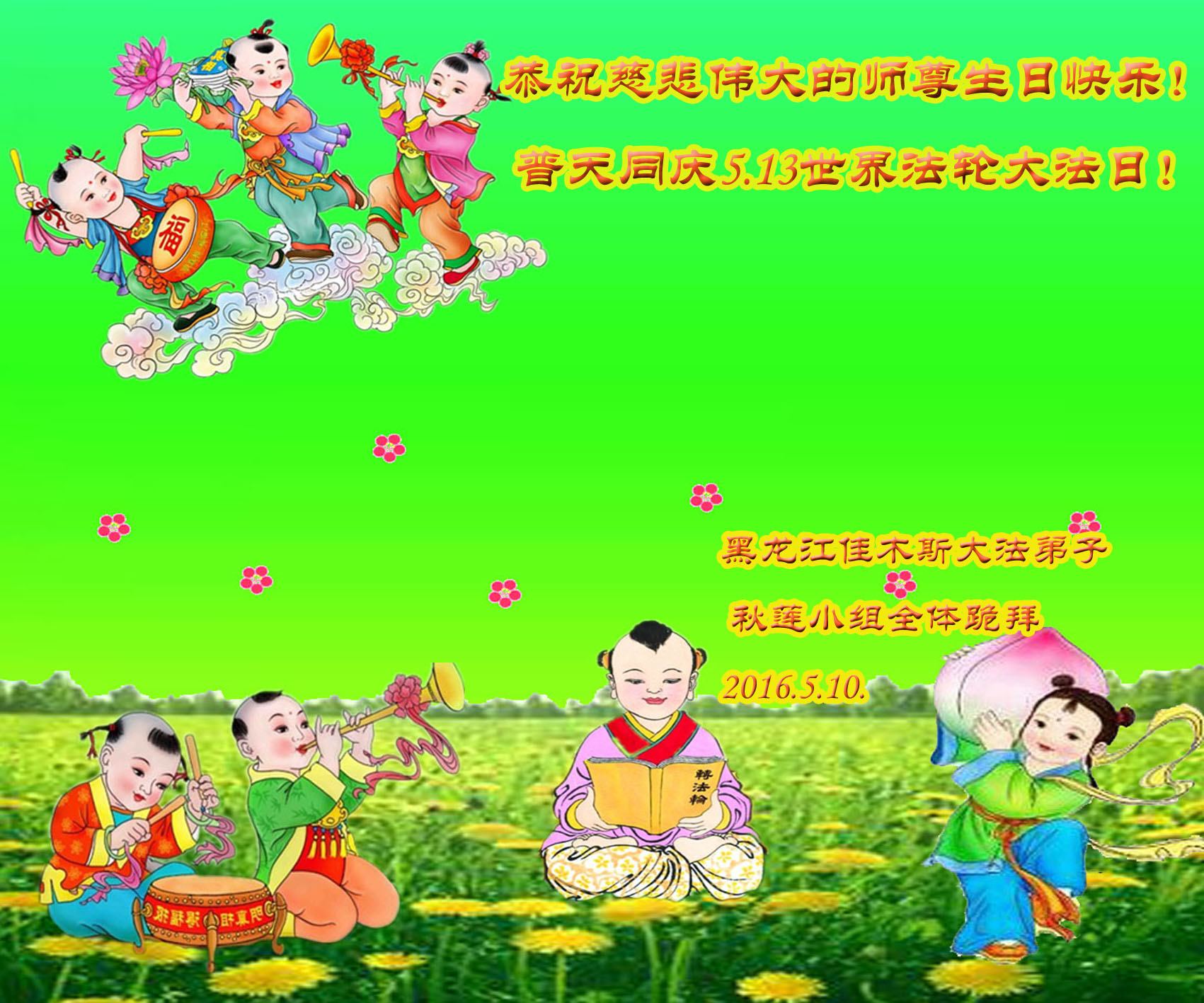 黑龍江佳木斯大法弟子恭祝慈悲偉大的師尊生日快樂!