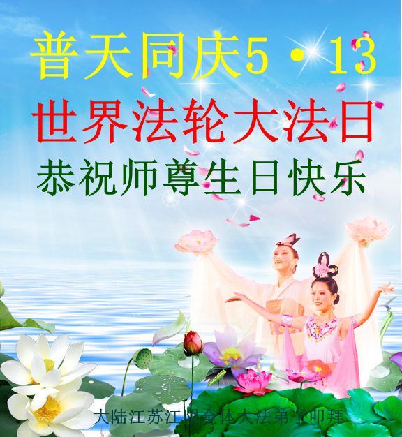 江蘇省無錫市江陰市全體大法弟子恭賀慈悲偉大的師尊生日快樂!普天同慶5﹒13世界法輪大法日!