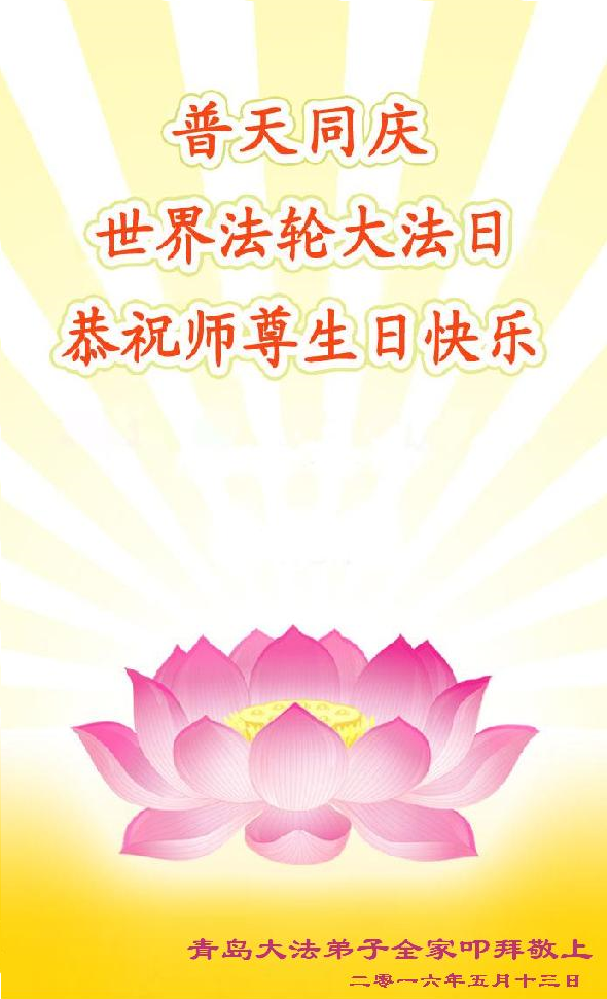 山東省青島大法弟子全家恭祝師尊生日快樂!