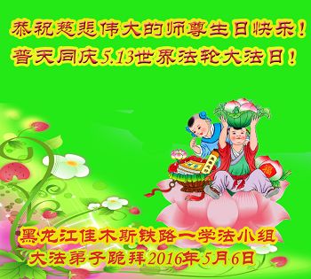 黑龍江佳木斯市鐵路大法小弟子恭祝慈悲偉大的師尊生日快樂!